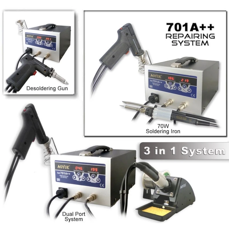 Aoyue 701a++ lödstation med integrerad lödkolv och avlödningspump