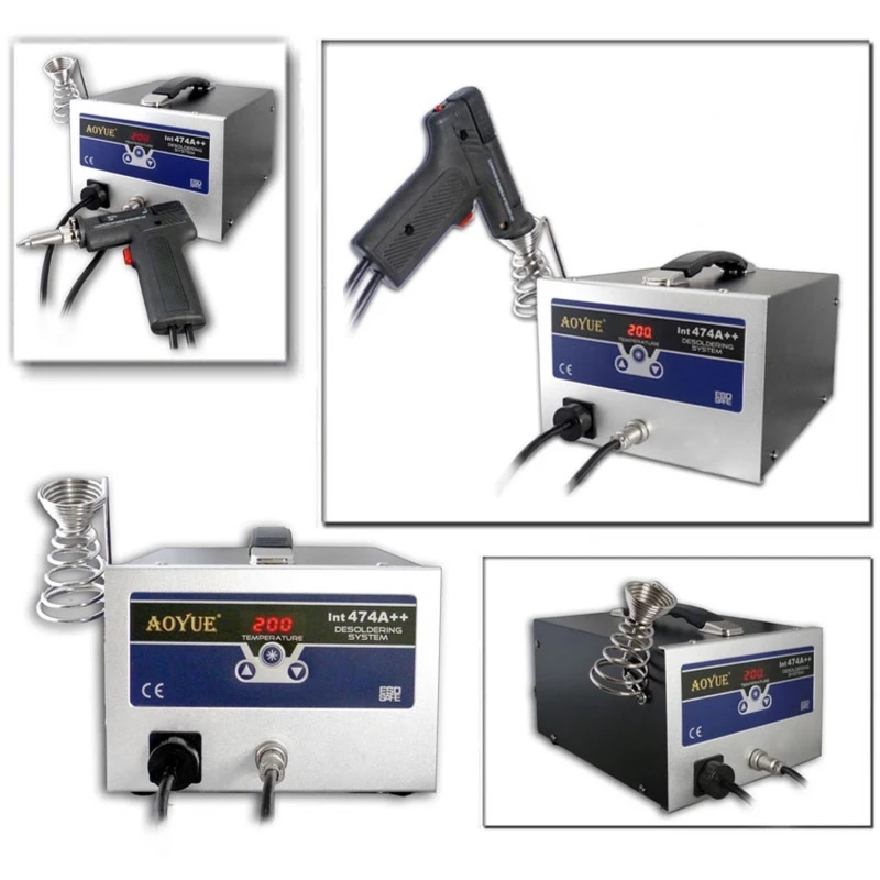 Aoyue 474a++ erbjuder digital temperaturkontroll, exakt kalibrering och auto-sleep-funktion, vilket förbättrar termisk stabilitet och minskar energiförbrukningen jämfört med analoga modeller med potentiometer. Den har dessutom en kraftigare vakuumpump och en nollgenomgångsdetekteringskrets, vilket minimerar elektriska överbelastningar och optimerar arbetscykler vid upprepad användning på flerskiktskort.