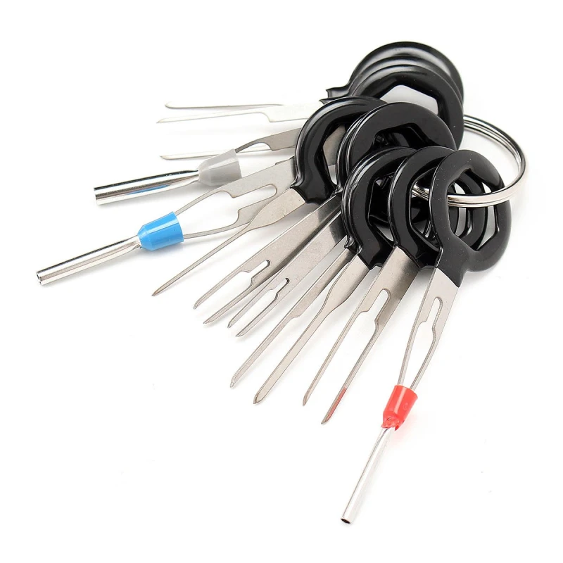 • 11 verktyg för utdragning av terminaler i bilkablage.