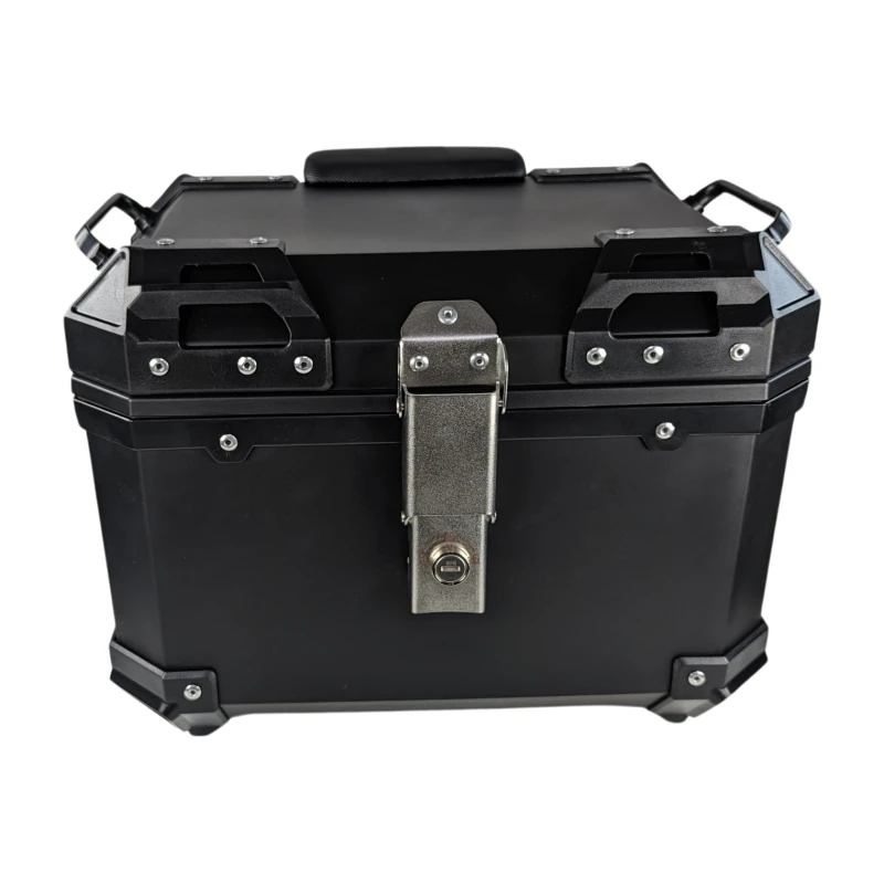 Den universella motorcykelboxen 36L med ryggstöd är den perfekta lösningen för motorcyklister som söker utrymme, säkerhet och komfort i en och samma produkt. Denna fyrkantiga box är tillverkad av svart ABS-plast med hög hållfasthet, vilket garanterar hållbarhet och skydd för dina tillhörigheter i alla väderförhållanden.