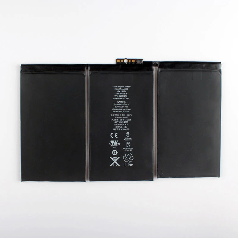 Batteriet är tillverkat av litiumjonpolymer, med en nominell kapacitet på 6500 mAh, 3,8 V och 25 Whr, vilket motsvarar kapaciteten hos det ursprungliga fabriksbatteriet i iPad 2. Detta säkerställer identisk elektrisk prestanda under standardförhållanden.
