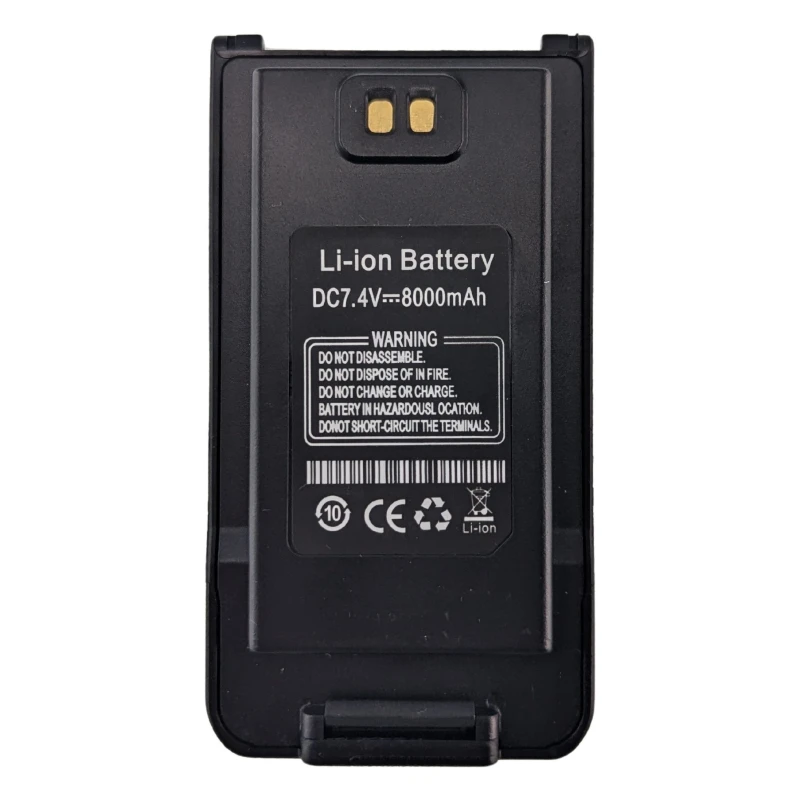 8000mAh-batteriet ger förlängd drifttid, idealiskt för lång användning, även om den exakta tiden beror på hur radion används.