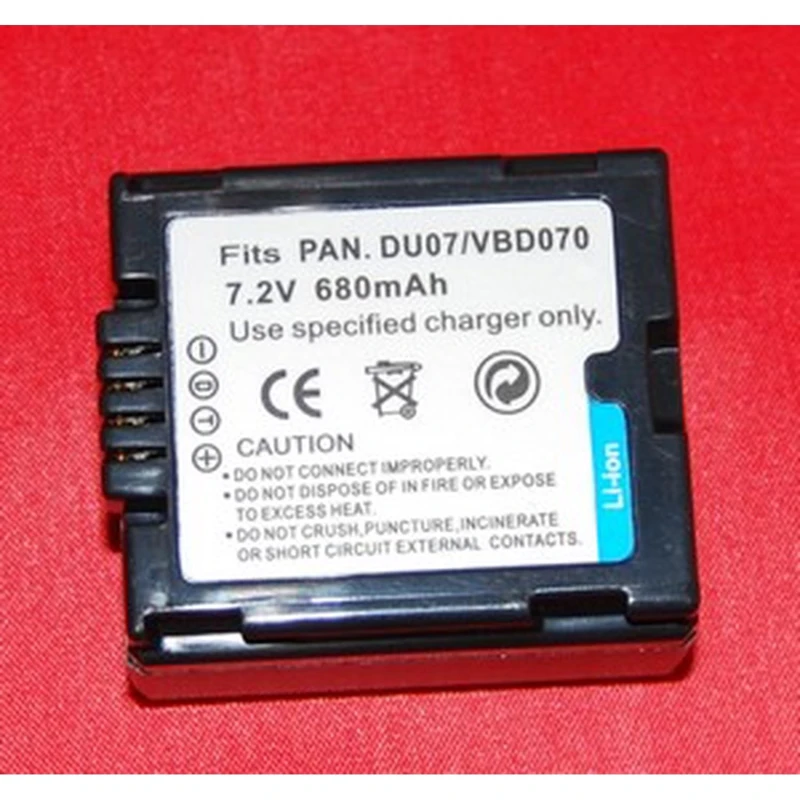 De typiska måtten för det kompatibla Panasonic Du07/Vbd070-batteriet är cirka 48 mm × 32 mm × 10 mm, med en vikt runt 50 g. Paketet innehåller endast batteriet, utan laddare eller extra tillbehör.
