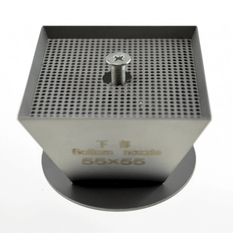 Det nedre munstycket Zhuomao ZM-R5860C ZM-R5860 storlek 55x55 är en specialiserad reservdel för lödstationer och reballing. Detta munstycke är utformat för att ge ett kontrollerat och precist luftflöde, vilket är avgörande vid elektronisk lödning och reparation av BGA-komponenter.