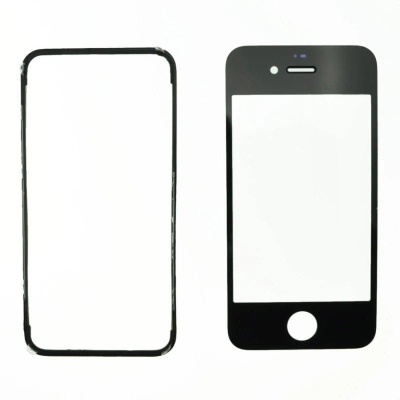 iPhone 4 glasdisplay svart med självhäftande ram är en viktig reservdel för reparation av Apple-enheter med skadad skärm. Produkten inkluderar det yttre glaset i svart och den självhäftande ramen som behövs för montering, men innehåller inte LCD, så det är viktigt att tänka på att endast det yttre glaset byts ut.