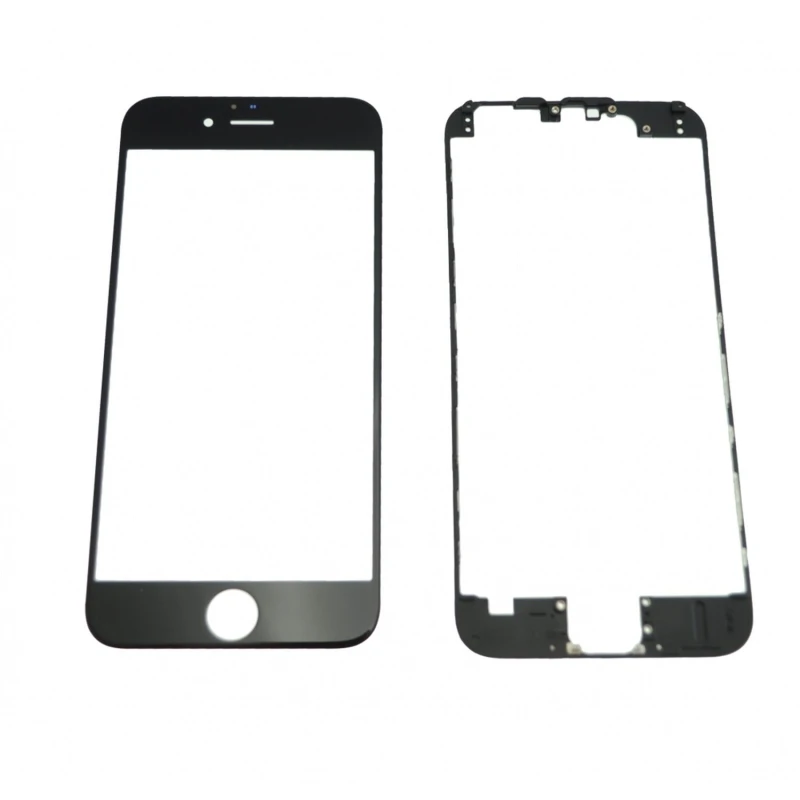 Skärmglas för iPhone 6s svart 4,7" är en viktig reservdel för reparation av enhetens frontkåpa. Denna produkt inkluderar den självhäftande ramen som behövs för att fästa skärmen korrekt när glaset har limmats på den ursprungliga LCD:n.