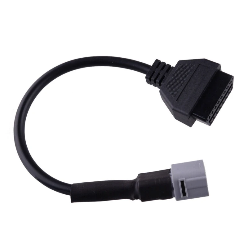 Denna kabel används för att ansluta Suzukis 6-poliga diagnosport på motorcyklar till OBDII-diagnosverktyg med 16 pin, vilket gör det möjligt att upptäcka fel och utföra underhåll.