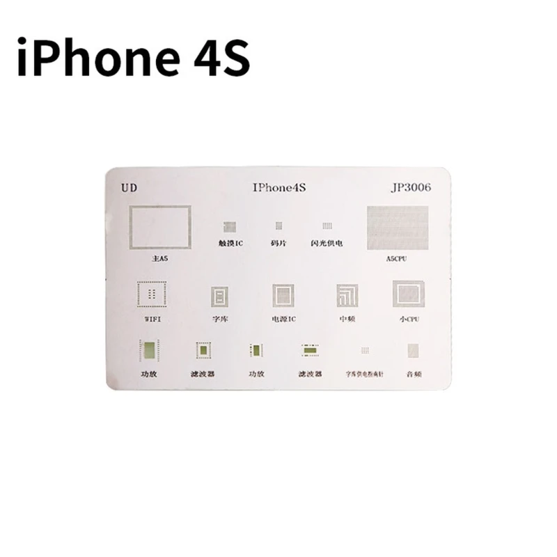 - Schablon för direktvärme som inkluderar alla BGA-kretsar i iPhone 4S.